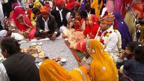 वेद समाज का पहला सामूहिक विवाह सोमवार को कृष्णा वाटिका में संपन्न हुआ, समाज के इस पहले सामूहिक विवाह में ठाकुर जी सहित 16 जोड़े विवाह के बंधन में बंधे। समाज के अध्यक्ष गणेशलाल वेद ने बताया कि सामूहिक विवाह की शुरूआत 9 बजे शोभायात्रा के साथ हुई। शोभायात्रा में सबसे पहले ठाकुर जी की झांकी आगे रही, इसके पीछे घोड़ों पर दुल्हे और पीछे बग्गियों में दुल्हनें।