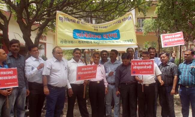 राजस्थान पशु चिकित्सक संघ के सभी चिकित्सकों ने वेतन विसंगति के विरोध में आज पुरे राज्य में सामूहिक अवकाश रखा, साथ ही सभी ने काली पट्टी लगाकर सरकार का विरोध किया।