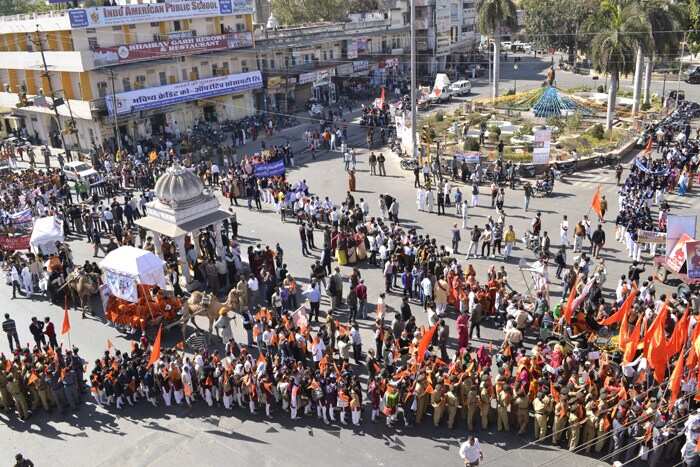 महासंगम स्थल विवेकानन्द मय बना सूरजपोल चैराहा एतिहासिक स्वामी विवेकानन्द की शोभायात्रा का महासंगम सूरजपोल चैराहे पर चारों स्थानों की शोभायात्रा 12.00 बजे एकजुट हुई। एतिहासिक महासंगम समयबध अनुशासित रूप से पहली बार इतनी बडी तादाद में शोभायात्रा निकली जिसमें अनेकानेक झाकियां, घुडसवार, समाज के प्रबुद्वजन, स्कूली विघार्थी आदि थे।