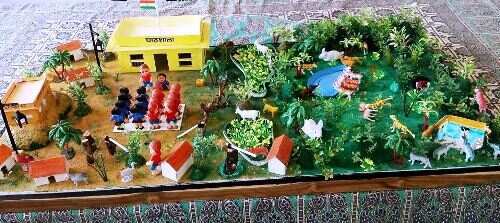 मॉडल में आबाद एवं संरक्षित जंगल के पास एक गांव भी दर्शाया गया है। गांव में खेत, पालतु पशु के साथ-साथ एक स्कूल भी दिखाई गई है जहां बच्चे निश्चिन्त हो खेल रहे है। यह सब इस बात का प्रतीक है कि यदि पैंथर को भोजन और पानी जंगल में ही उपलब्ध करवा दिया जाये तो वह कभी बस्ती क्षैत्र की ओर नहीं आयेगा। पैंथर को उसकी बुनियादि जरूरते जंगल में ही उपलब्ध हो जाती है तो वह क्यों बस्ती क्षैत्र की ओर अपना रूख करेगा। इनके खाने के लिए हिरण, सांभर, खरगोश आदि जानवरो की संख्या बढ़ाने के समुचित प्रयास किये जाने चाहिये। इस प्रकार जंगल से सटा एक गांव भी सुरक्षित हो जायेगा। मॉडल में यह भी समझाने का प्रयास किया गया है कि केवल मानव ही नही वन्यजीव भी अपने क्षैत्र में किसी अन्य का दखल पसंद नहीं करते है। इसके लिए मॉडल में जंगल में बने एक मकान को नाराज हाथियों द्वारा तोड़ा जा रहा है। यह मानव के लिए स्पष्ट संकेत है कि मूक पशु भी अपने क्षैत्र व निजता में किसी का हस्तक्षेप पसंद नहीं करते।