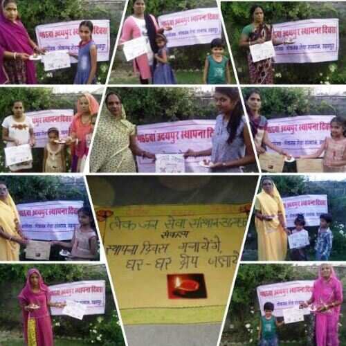 स्थापना दिवस पर शहर के घर घर दीप जला उत्सव मनाने को प्रेरित करने कि लोक जन सेवा संस्थान कि मुहिम के तहत आज चित्रकूट नगर कि महिलाओं ने अपनी बेटियों सहित यह संकल्प लिया कि वे उदयपुर स्थापना दिवस पर अपने घरों को सजाऐगीं व दीपक जला रोशन करेगी।