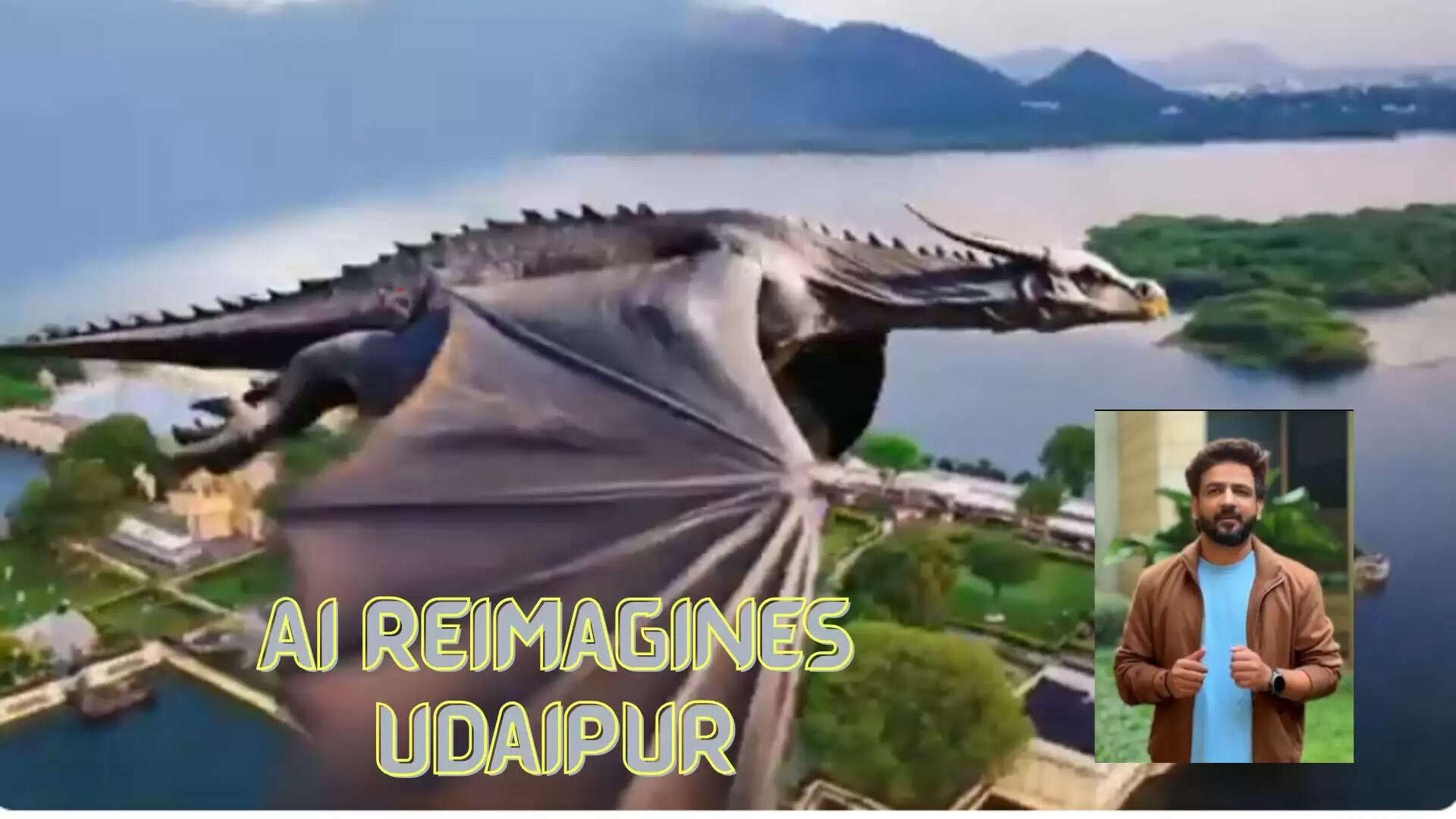 The video presents a fantasy vision of Udaipur in which exotic and mythical creatures embark on a holiday alongside AI-generated residents and tourists.