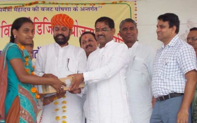 Students who performed exceptionally well in academics were given laptops and bicycle in honor by Tribal Area Development Minister Mahendrajeet Singh Malwiya in a ceremony held today under Rajiv Gandhi Digital Student Yojna.