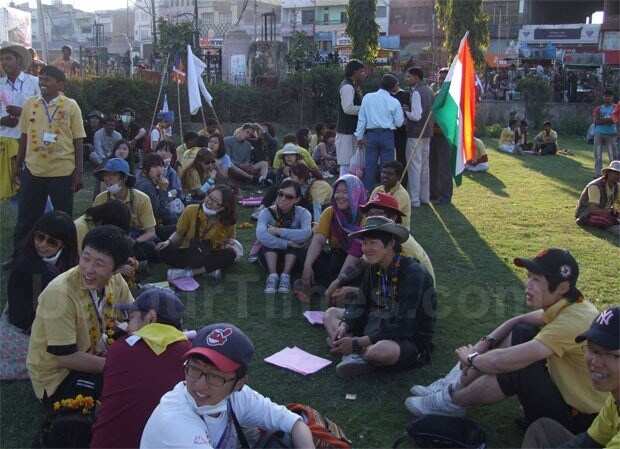 The 7th International Peace March organized by the joint effort of YBS India and IWO Korea reached Udaipur at 4:30 PM today, February 5, 2010. More than hundred volunteers from Korea, Thailand, Cambodia, Tibet and India completed nearly 600km journey, walking from Jaipur to Udaipur. Their aim is to promote peace and harmony in the world while encouraging youth to join their mission. This Peace march started from Jaipur on 27th January.