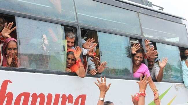 Pilgrims were given a warm welcome at various places; they had left a month back with 250 individuals in 3 buses, of which 99 people were from Udaipur.