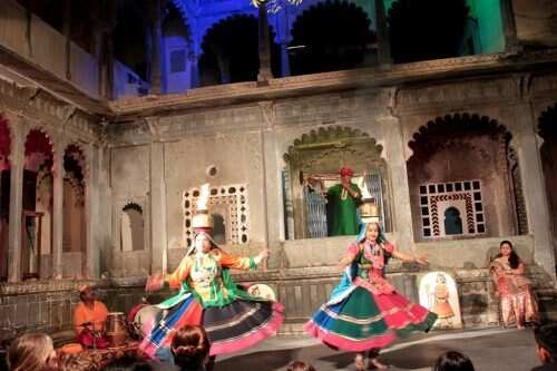 Bagore ki haveli has 138 rooms along with a museum and a cultural centre to showcase the traditional cultural and folk dance forms. The haveli has glass and mirror in the interiors. Two peacocks carved out from small coloured glass pieces are examples of glasswork. There are illustrations of Mewar paintings on the walls in the Queen’s Chamber.