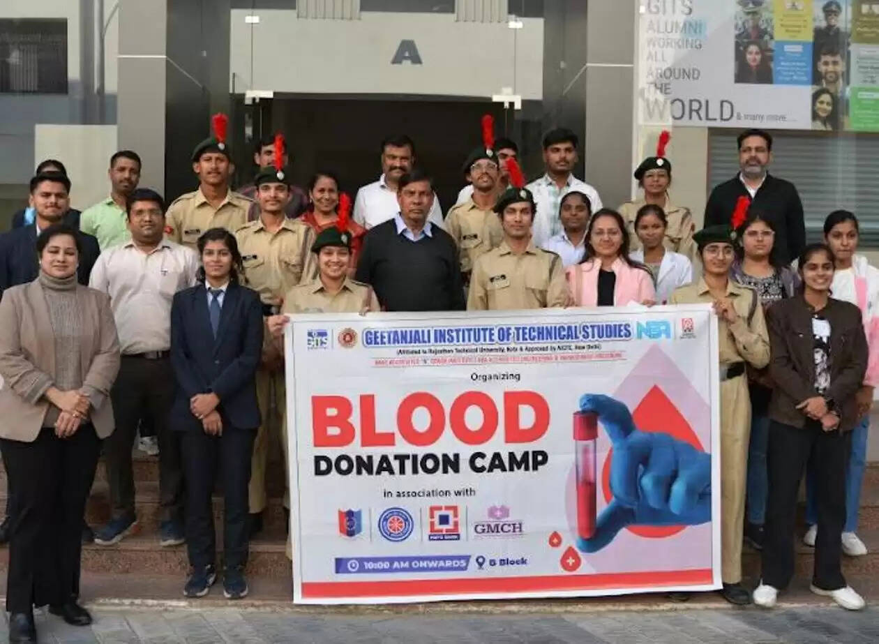 उदयपुर 9 दिसंबर 2024। गीतांजली इन्स्टीट्यूट ऑफ टेक्नीकल स्ट्डीज (गिट्स) डबोक, उदयपुर व एचडीएफसी बैंक के सयुंक्त तत्वाधान में “जीवन बचाओं“ अभियान के तहत एन.सी.सी. के बैनर तले रक्तदान शिविर का आयोजन किया गया। इस शिविर में रक्तदान के माध्यम से विद्यार्थियों ने समाज और अन्य लोगों के जीवन को बचाने का संदेश दिया ।