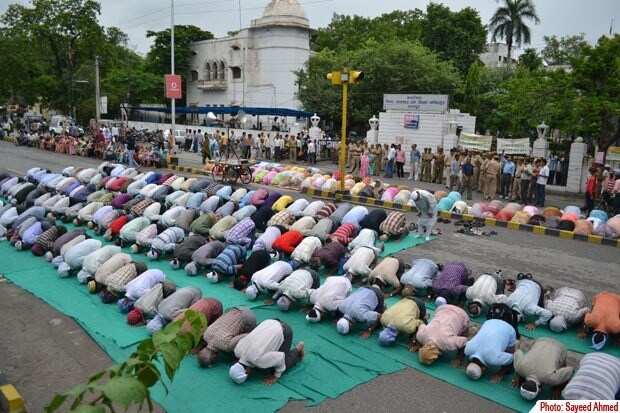 Bohra offering afternoon prayers in front of collector’s office, Udaipur