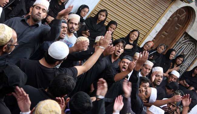 To express both honor and sorrow for Imam Hussain, Grandson of Prophet Muhammad and son of Hazrat Ali, the devotees were dressed in black clothes and narrating the story of Karbala in a poetic way, known as Marasiya.