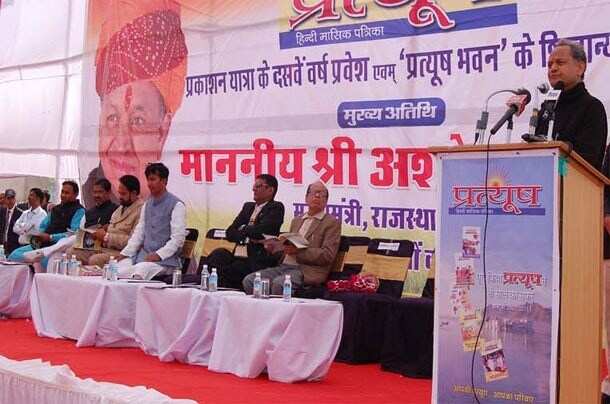 Ashok Gehlot also laid the foundation stone of Pratyush Patrika Bhawan amidst vedic proceedings on Sunday afternoon at Chitrakoot Nagar and then visited the exhibition of Pratyush Patrika. While addressing the gathering he said that the role of media cannot be denied in India’s struggle for Independence.
