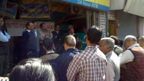 All private and government banks remained closed today following the strike. According to the information provided by bank employees, a group of people first gathered outside HDFC Bank, Durga Nursery Road and started protesting against government.