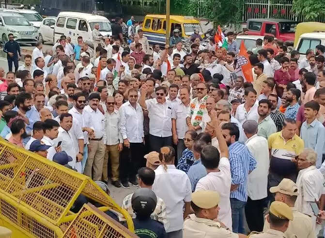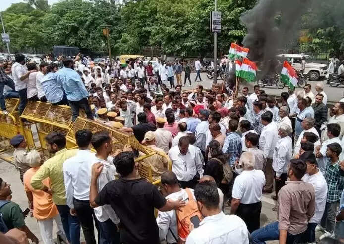 कांग्रेस कार्यकर्ताओं ने विरोध स्वरूप टायर जलाए और नारेबाजी की। कुछ आक्रोशित कार्यकर्ता कलेक्ट्री के गेट पर लगी बेरिकेडिंग पर चढ़ गए और नारेबाजी शुरू कर दी।