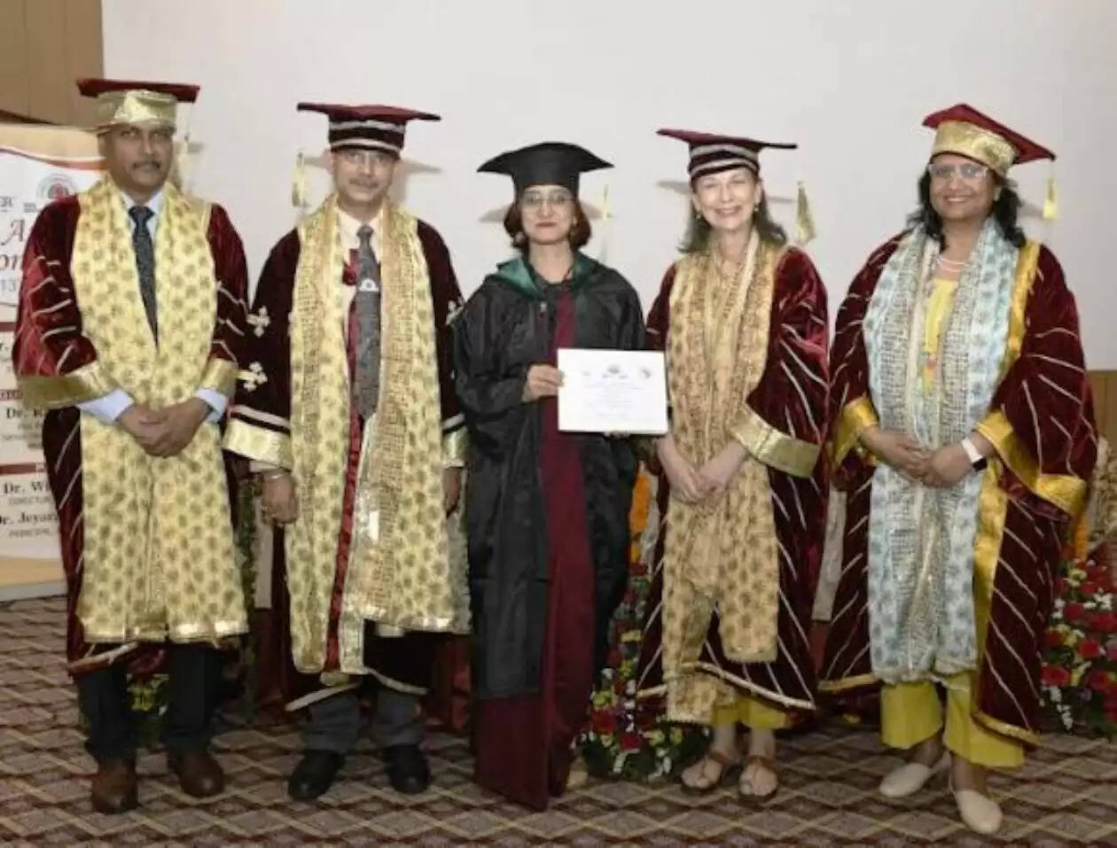 उदयपुर 23 अप्रैल 2025। गीतांजली मेडिकल कॉलेज एंड हॉस्पिटल (GMCH), की स्त्री एवं प्रसूति रोग विशेषज्ञ डॉ. नलिनी शर्मा को मेडिकल एजुकेशन के क्षेत्र में उत्कृष्ट कार्य के लिए अंतरराष्ट्रीय फैलोशिप से सम्मानित किया गया है।