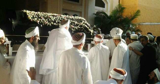 Earlier today morning a giant procession was carried out in Mumbai from his residence Saifee Mahal at Walkeshwar, where around 2.5 lac community members participated.