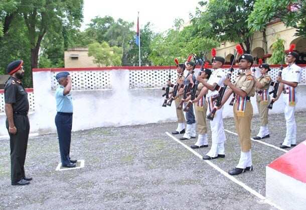 Air Commodore Radhakrishanan S, Dy DG NCC Rajasthan visited NCC group HQ Udaipur on 8 August 12. During his visit the Dy DG was given a Guard of Honor by the combined Guard of Army, Air force and Navy Cadets.