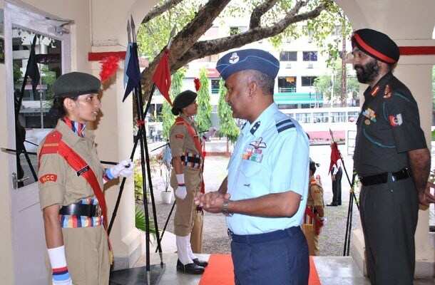 Air Commodore Radhakrishnan S inspected the Group HQ and proceeded to inspect the Institutional Training of the NCC Cadets at St Paul School.