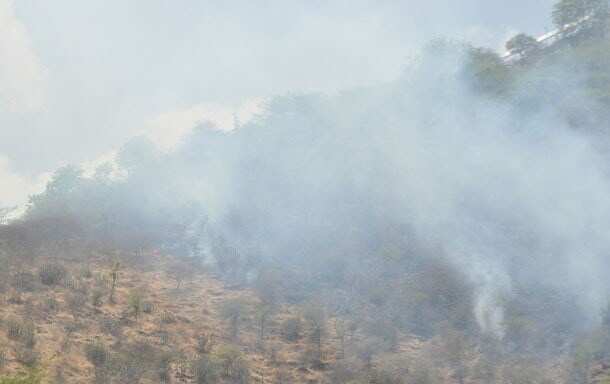 According to sources, the fire broke out in the foothills area of Neemach Mata today at around 11:30am, the main cause of which is assumed to be the high temperature during the day and the dry leaves in that area.
