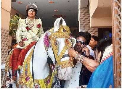 Everyone wears the traditional head gear sehra while on horse-back for the wedding procession. A groom from Madhya Pradesh wore a helmet instead of sehra. He presented a unique example as a message for safety which soon became talk of the town.