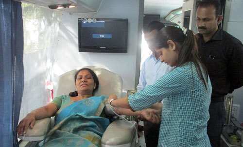 Also, on the second day of Health Fair 2014 being organized at Sukhadia Circle by Geetanjali School & College of Nursing, a blood donation camp was setup. The camp here was held under the joint efforts of Geetanjali Hospital Blood Bank and RNT Blood Bank.