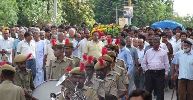 Esteemed freedom fighter and social worker Hukumraj Mehta passed away on July 10, 2011 aged 87. His funeral procession took place today with utmost honor. The procession witnessed people turning in large number to give a final adieu to the revered freedom fighter.