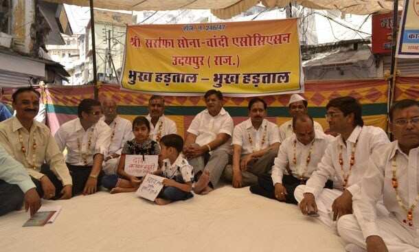 After protesting continuously for 19 consecutive days and with no productive results, the members of the Udaipur Sarafa Association have augmented their protest by taking on a Hunger Strike from today at Ghanta Ghar. As reported earlier, the association is protesting against the custom hike on gold.