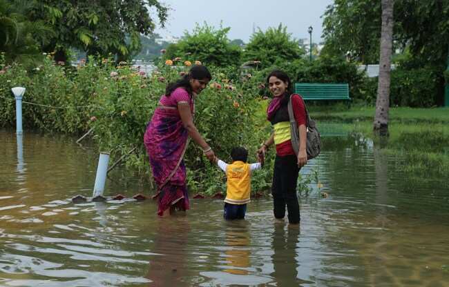 Visitors to the park were seen rather excited than annoyed over drenched garden. The water is likely to wipe out as the overflow gates of lake are already opened to release additional water.