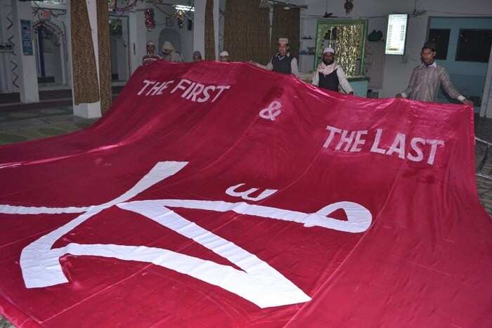 On the occasion of Islamic festival of Milad-un Nabi (Birthday of Prophet Muhammad), a Muslim devotee from Udaipur’s Alipura area has made a gigantic flag printed ‘Muhammad’ in Arabic script.