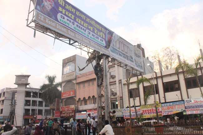 As per the crowd, the person is identified as David. He is suffering from mental illness and is usually seen in the same area. Yesterday he climbed onto one of the advertisement poles and after half an hour of struggle, the crowd finally got him down by showing Rs. 50 note.