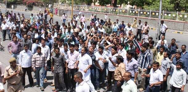 Hundreds of students and JRNRV officials marched through to the Collector’s office and presented a Memorandum demanding stern action against Prafful Nagar and his wife Divya Prabha Nagar for allegedly misconducting the procedures of appointing the new Chancellor and alleged obstinate behavior.
