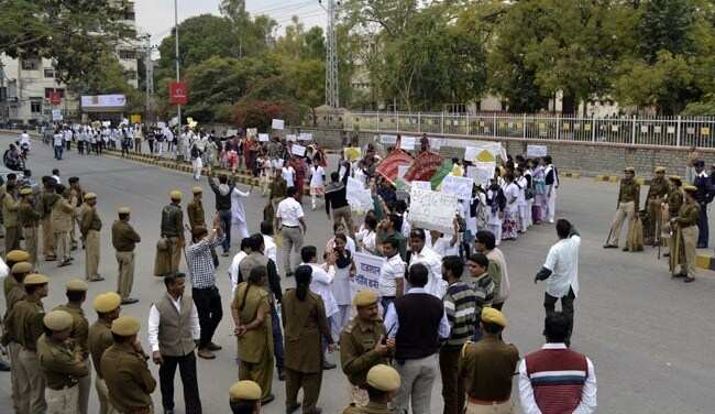 The protestors first gathered outside collectorate and presented a memorandum. Thereafter, they moved towards the office of Divisional Commissioner in a form of procession.