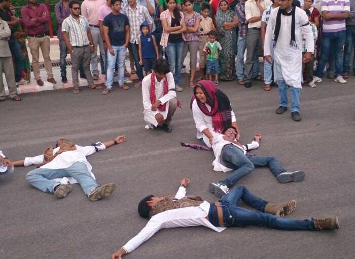 Showcasing the miseries of present India, which is gripped between several social and political bigotries, Udaipur based local theater group ‘Natyansh’ organized a street play “Azadi ka Bantwara” (Partition of Independence) on this Independence Day.