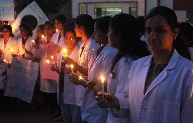RNT Medical Students carry out candle march in Udaipur to express their angst over the police action against medical students of Kanpur’s S.V.M College. Students demanded justice for the students and a high level inquiry.