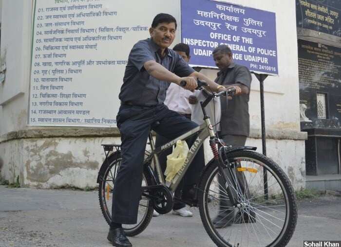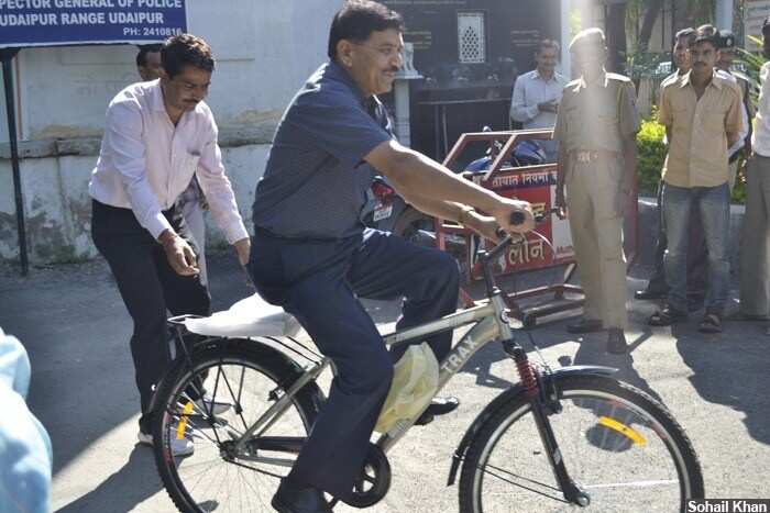 The Inspector General of Police, Udaipur Range T. C. Damor surprised everyone, including his subordinates, when he reached the office today on his bicycle. Surprisingly, nobody noticed I. G. and his guard cycling from his residence to office.