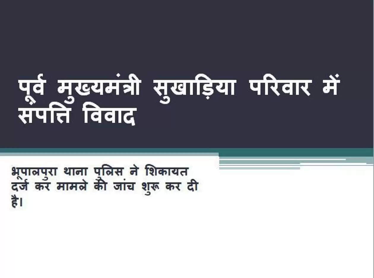 पूर्व मुख्यमंत्री सुखाड़िया परिवार में संपत्ति विवाद