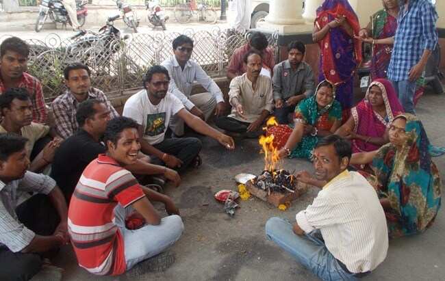 Demanding appointment of more sweepers in the city, the associations of sweepers continued their protest and demonstration outside Udaipur Municipal Corporation’s office. Under the banner of Valmiki Samaj, the members conducted “yagya” to highlight their cause.