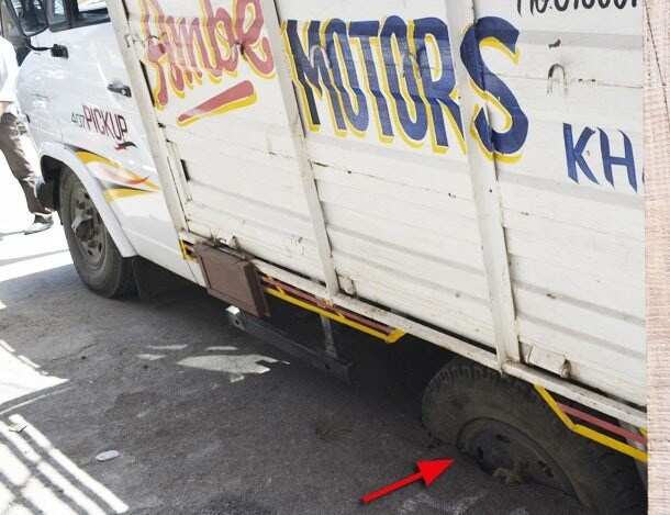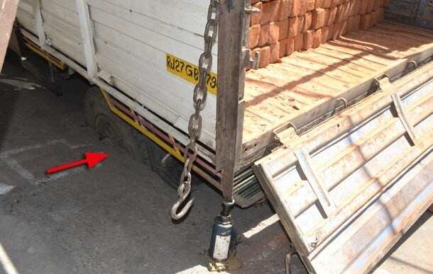 In what can be described as an amusing incident, the truck’s rear tyre went so deep that neither human muscle nor a jack could assist in cutting loose the stranded vehicle and its owners. The task took effect only when a crane came to their rescue.