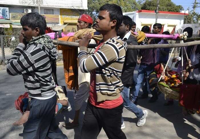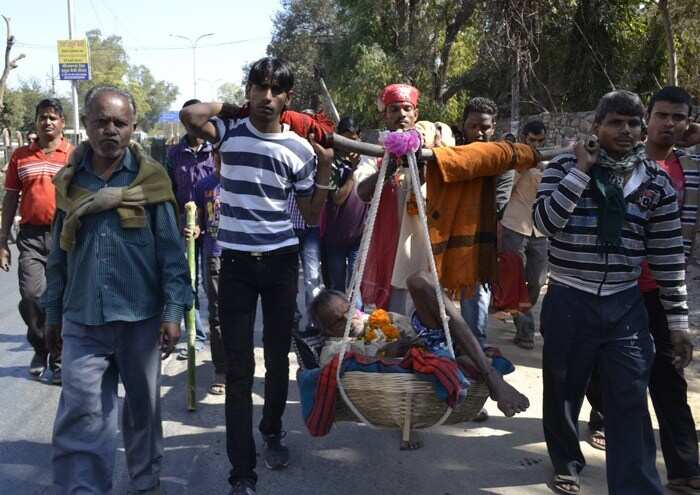 Son takes Disabled parents on shoulders to Jagdish Temple