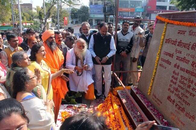 Udaipur Municipal Corporation unveiled the statue of Meera Bai today at Daitya Magri Tiraha. The statue portraying Meera Bai sitting in intense devotion was unveiled by the chief guest Shantakya, chief director of Rashtra Sevika Samiti.