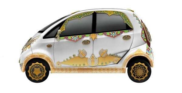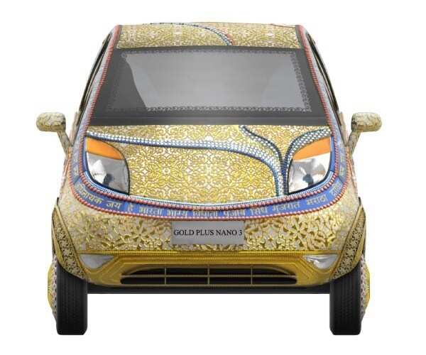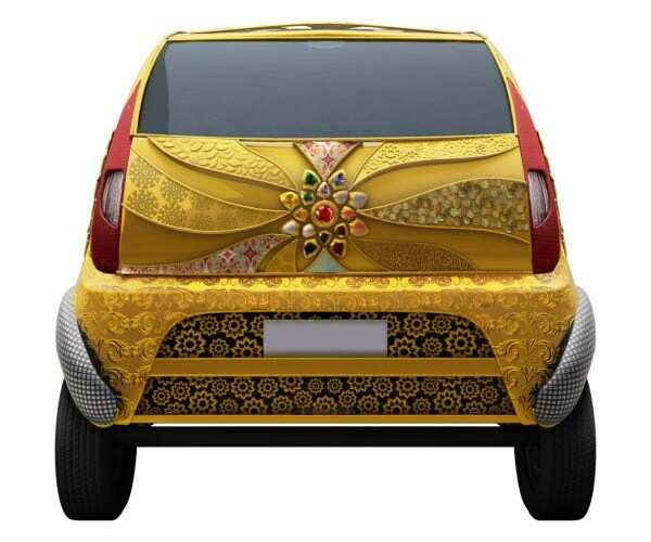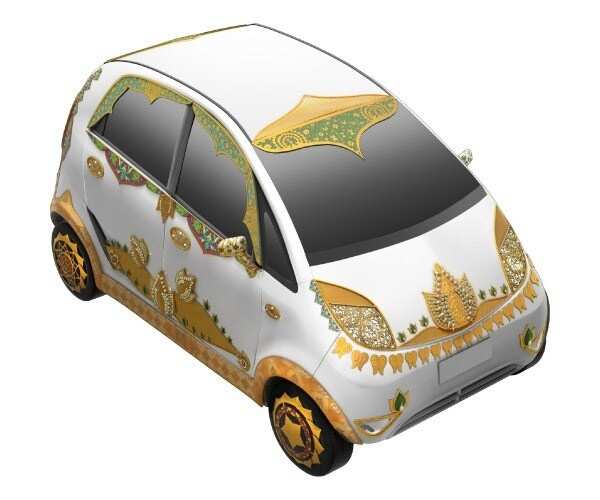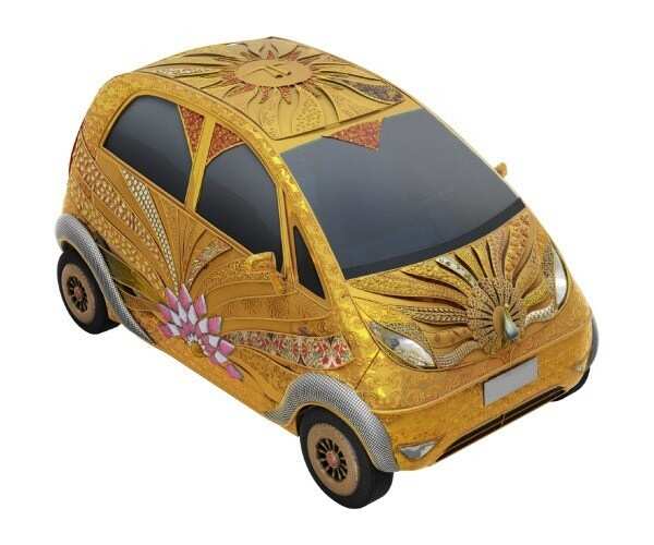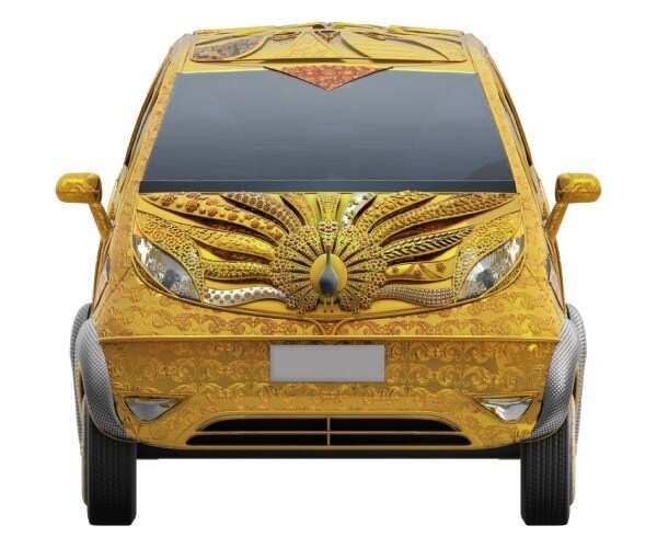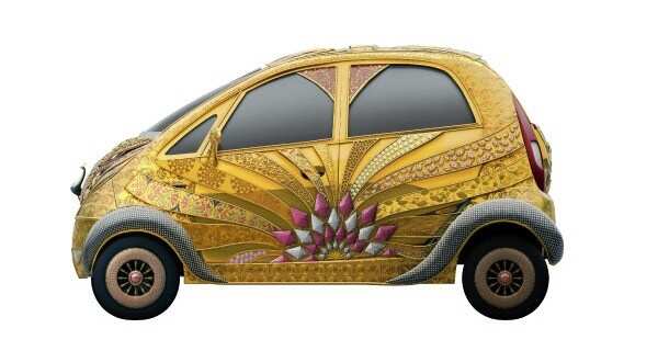 TATA’s Nano was one of the top breaking news when launched. Because of its low price tag, petite shape and a big brand name TATA attached with it. Once again TATA is gearing up by introducing its nano in a rare appearance. A gold and diamond studded nano, first pure gold jewelry car in India.