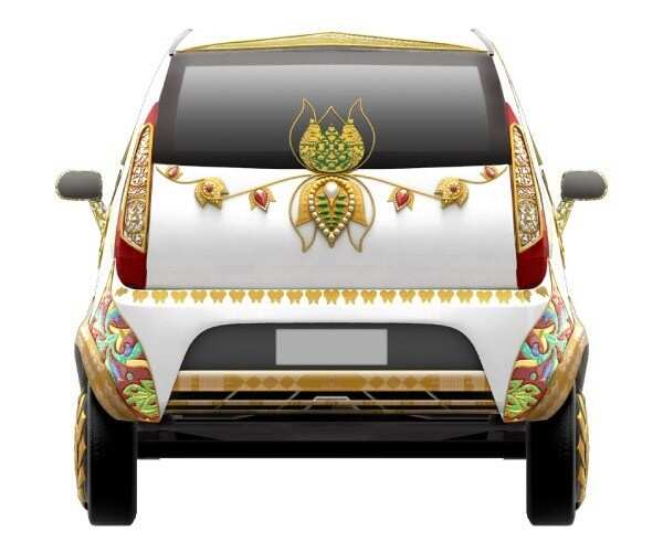 Rear- Lotus has been used as a theme of Aakar or nano2 and it reflects beautifully on its rear. By using shining red, green and white pearls and pebbles the series of lotuses looks opulent.