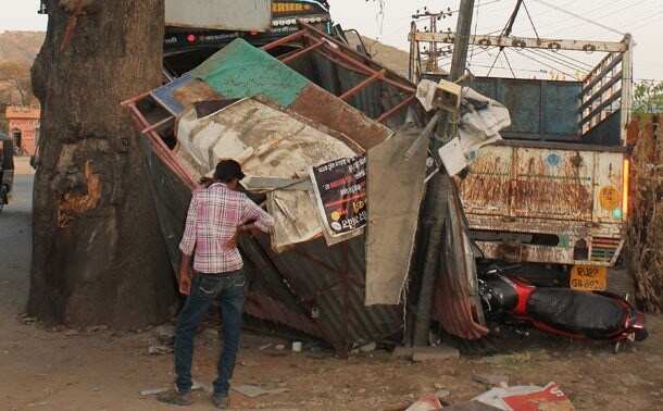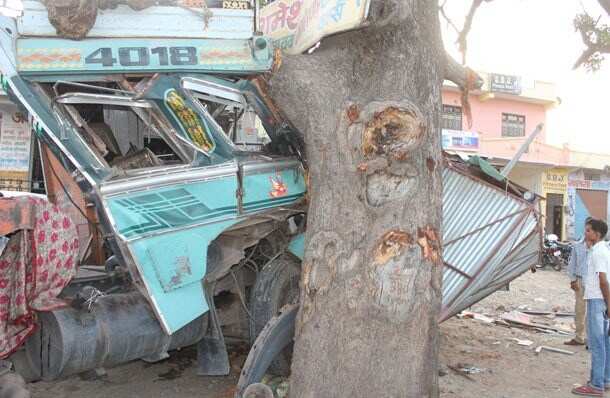 According to Hiran Magri Police, a truck was coming from Balicha and going towards Pratap Nagar. When the truck was passing through Eklingpura, the driver, who is yet to be identified, suddenly lost control of the truck. In trying to avoid any mishap, he turned the vehicle towards side of the road but while doing so, hit a pickup truck and a parked motorcycle before hitting a tree.