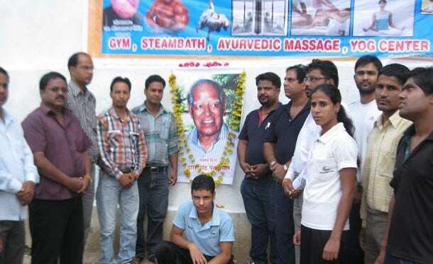 Ustaad Karansingh Pahelwaan, Shree Bhim Rashtirya Vyayamshala, Hathipol paid their homage to Rustem-E-Hind World Champion Dhara singh who left for his heavenly abode today morning.