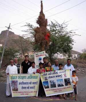 The increasing number of Holi burning events instead of a group Holis has also put burden on the demand. Through the Semal conservation mission that began in 2007 the society has developed saplings of Semal from seeds and planted them in around the district.
