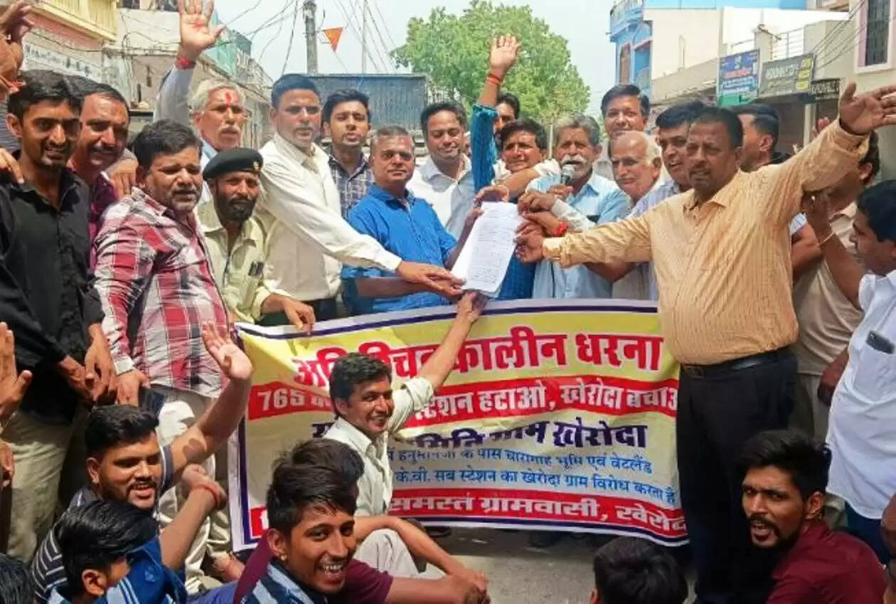 इस दौरान कस्बे में खेरोदा संघर्ष समिति के सदस्य एवं ग्रामीणों,महिलाएं,युवा सहित सैकड़ों की तादाद में ग्रामीणों ने रैली निकालकर खेरोदा बंद कर बस स्टैंड पर पहुंचे। जहां एक सभा आयोजित कर 765 केवी सब ग्रिड स्टेशन को हटाने का पुर जोर विरोध कर उप तहसीलदार को ज्ञापन दिया।