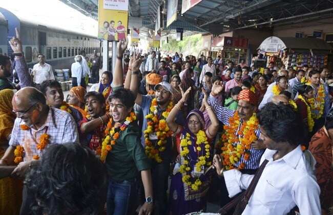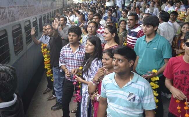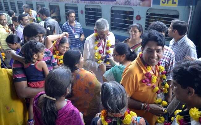 Around 18000 people reached Udaipur in a special train today at 3:45 pm. Relatives and friends gave a great welcome with garlands, gulal, lightning of lamps and band. The journey began on 27th Sept from Udaipur.