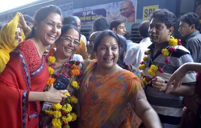 Pilgrims of Sammed Shikhar were received affectionately by relatives and friends upon their arrival to Udaipur today. The six day pilgrimage 'Svarnim Shashvat Teerth Yatra' came to an end today.