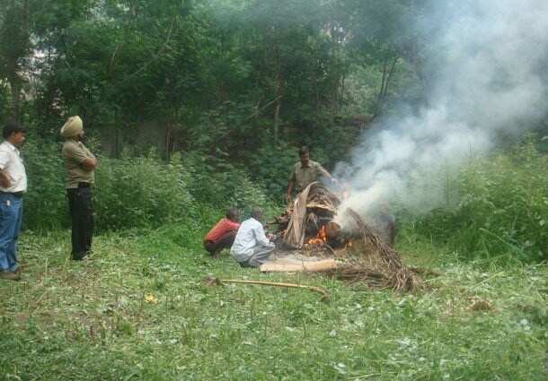 The dead body of the panther was put to flame in presence of the forest department officials and the administration at Gulabh Bagh Zoo. Ram Singh, the Care taker, gave the fire to body of the leopard with sore eyes.