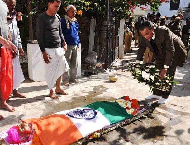 Before the procession started, the dead body was wrapped in tricolor and departed for the final journey, with National honors.