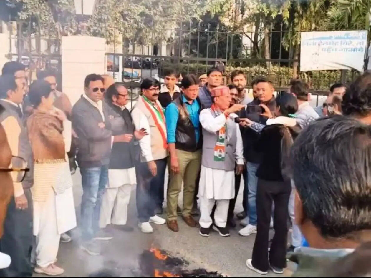 उदयपुर में कांग्रेस ने अमित शाह का पुतला दहन किया
