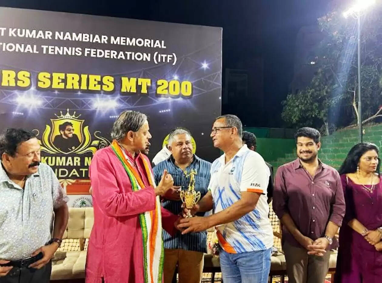उदयपुर 17 फ़रवरी 2025। अन्तर्राष्ट्रीय टेनिस फेडरेशन द्वारा त्रिवेन्द्रम में आयोजित विश्व मास्टर्स टेनिस प्रतियोगिता आईटीएफ-200 में उदयपुर के वेटरन टेनिस खिलाड़ी दीपांकर चक्रवर्ती ने शानदार प्रदर्शन करते हुए 60 वर्ष आयु वर्ग में सिंगल्स व डबल्स में रनर अप रहे। विजेताअें को त्रिवेन्द्रम के सांसद शशि थरूर ने ट्राफी व पुरूस्कार से सम्मानित किया।